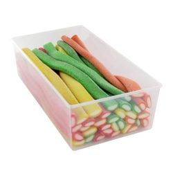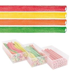 Ingrédients : Sucre, sirop de glucose, farine de blé, eau, amidon de maïs, graisse végétale (palme), acidifiant : acide citrique, acide tartrique, acide malique, maltodextrine, citrate de sodium, arômes, stabilisant : gélatine, émusifiant : E471, conservateur : sorbate de potassium, colorants E102, E129, E133.